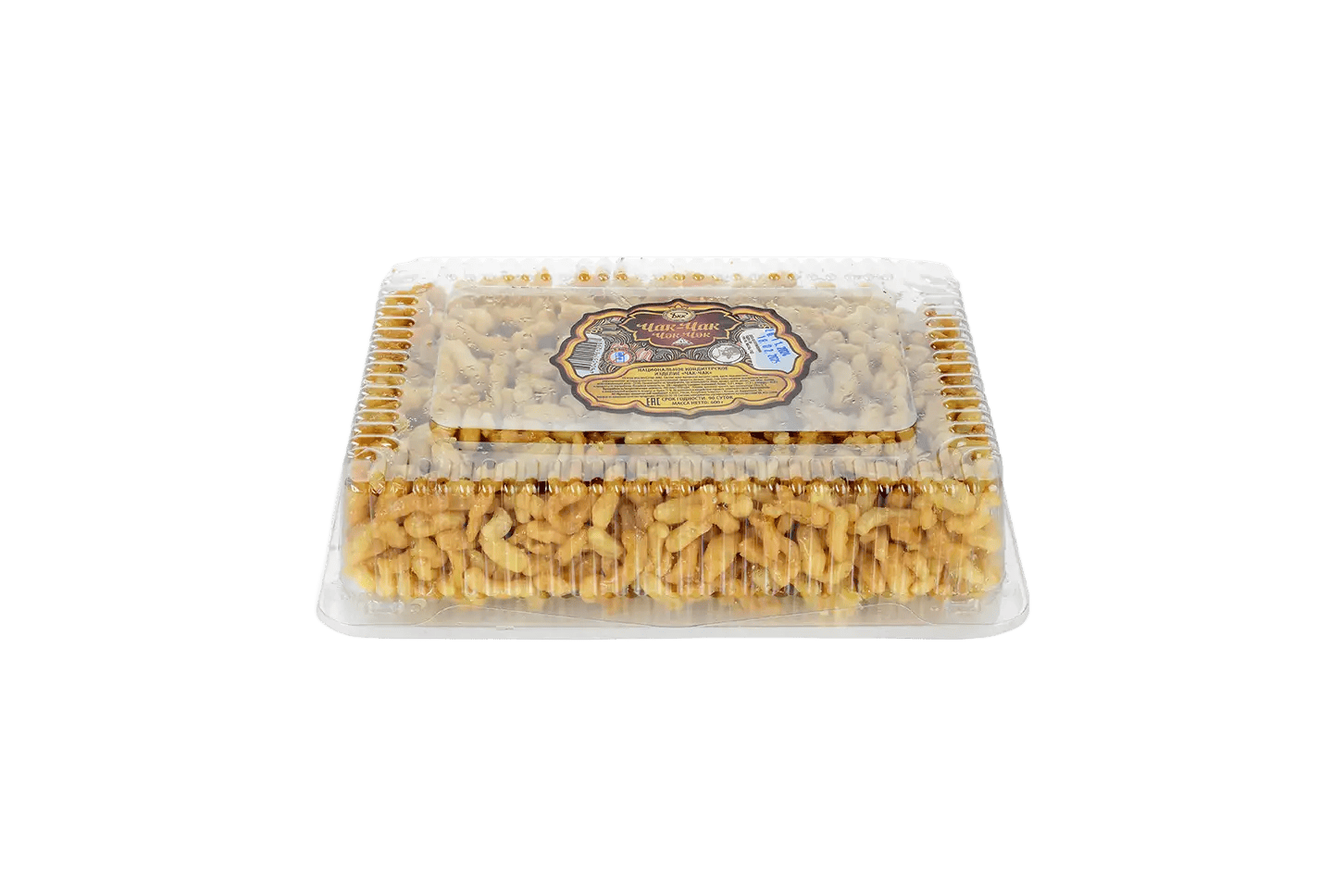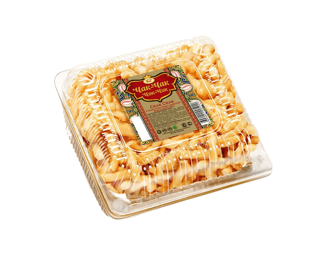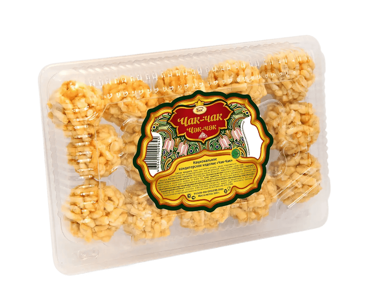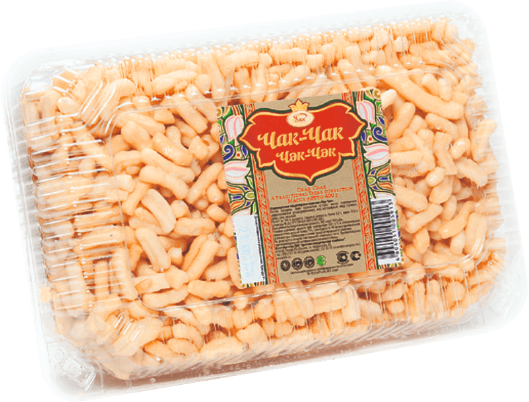 Национальное кондитерское изделие «Чак-Чак» - это сладкий десерт из обжаренных во фритюре кусочков теста, пропитанных медовым сиропом. Традиционное блюдо «Чак-Чак» станет отличным сувениром и подарком к столу.