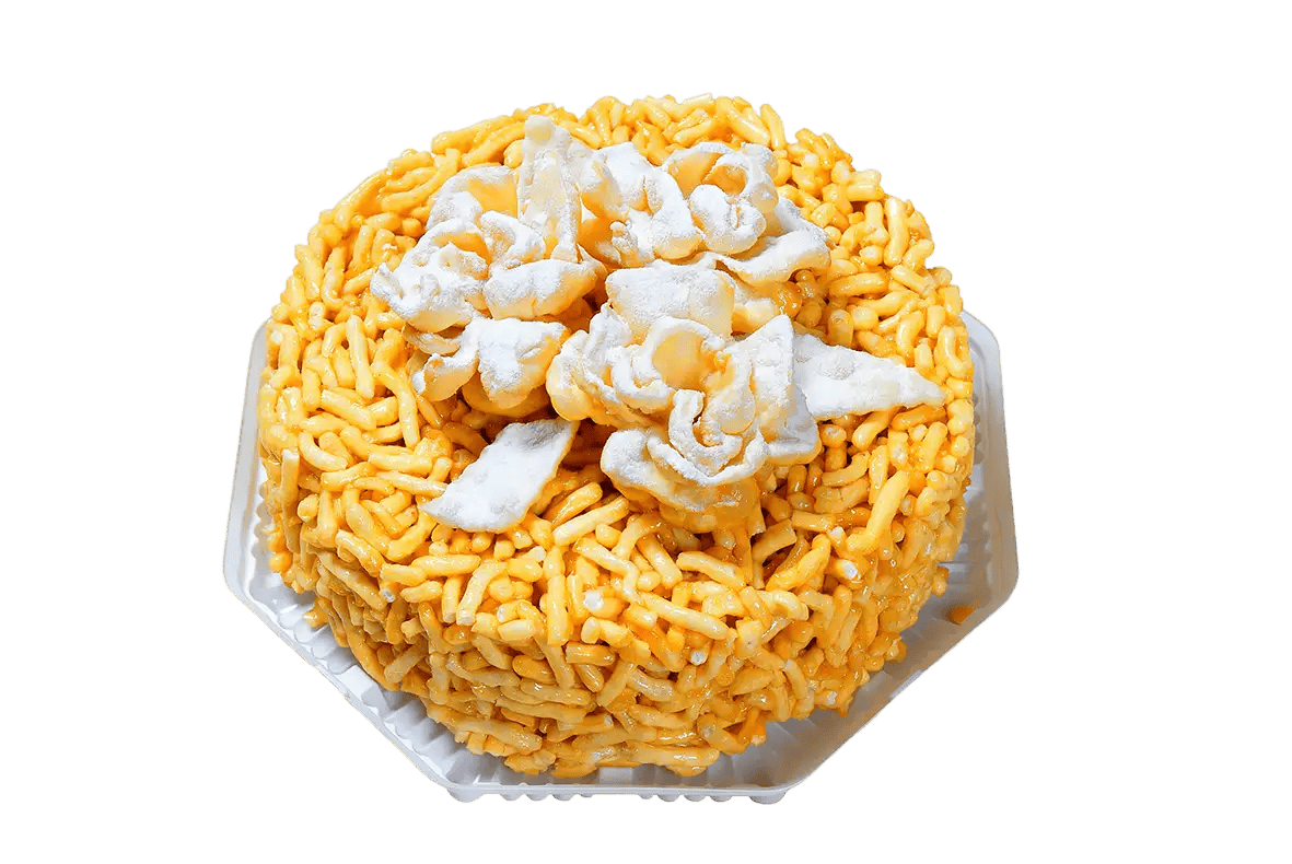 Национальное кондитерское изделие «Чак-Чак» - это сладкий десерт из обжаренных во фритюре кусочков теста, пропитанных медовым сиропом. Оформлено в виде торта с цветами из воздушного хвороста. Традиционное блюдо «Чак-Чак» станет отличным сувениром и подарком к столу.