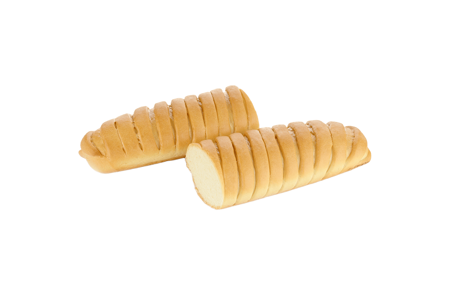 Длинный, красиво оформленный пшеничный багет с тонкой корочкой. Мякиш хорошо пропеченный, мелкопористый. Багет для вкусных брускет и бутербродов к застолью или на каждый день!