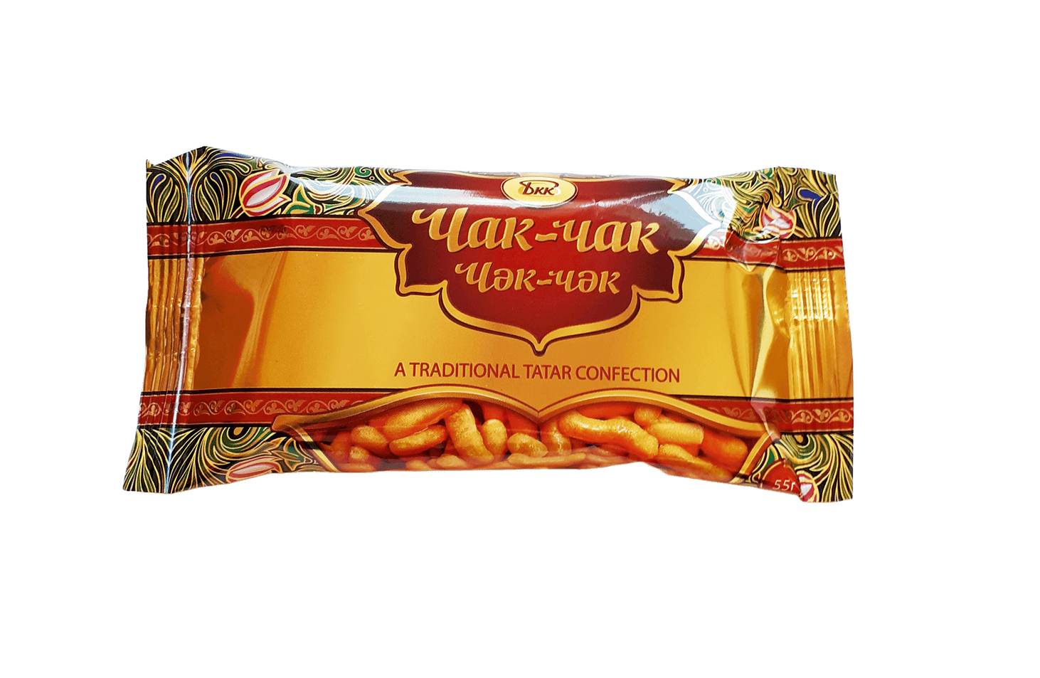 Национальное кондитерское изделие «Чак-Чак» - это сладкий десерт из обжаренных во фритюре кусочков теста, пропитанных медовым сиропом. Упаковка стилизована татарским орнаментом. В шоу-бокс упакованы 12 штук изделия «Чак-Чак» в индивидуальной упаковке - удобно взять с собой.